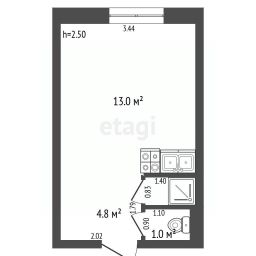 18,8 м², 1-комн., 1/5 этаж