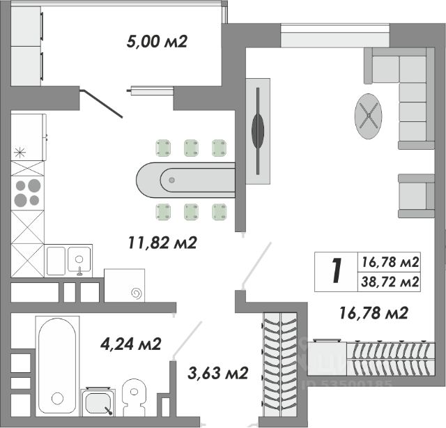 Общая площадь 38 м²