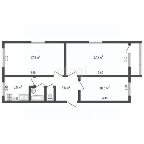 - комнаты раздельные и достаточно большие, что отлично подойдет для семьи с детками: зал - 22,6 кв.м, спальня - 16,3 кв.м, спальня - 10,2 кв.м., просторная кухня - 7 кв.м.;