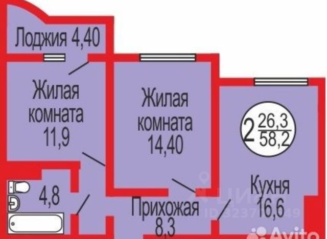 В продаже трехкомнатная квартира, S -60 кв.м.