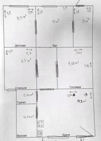 Комнаты - 3 спальни и зал. Выровнены стены, новая проводка по ГОСТу, новые полы в уровень. В двух спальнях сделаны потолки и светильники, напольные покрытия, в одной из комнат поклеены обои. Остальные комнаты в предчистовой отделке.