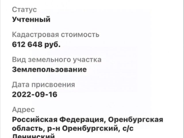Земельный участок 12 соток в центре села. Село находится на федеральной трассе Оренбург - Казань. 45 км от Оренбурга. Вокруг участка асфальт. Участок огорожен с 4 сторон забором из профлиста. Проведено электричество. Пробурена скважина. Газовая труба проходит по участку. Сделаны дорожки из бетона. Есть сарай из профлиста, насаждения. Не затапливается.