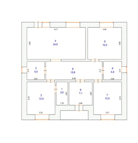 По периметру, вокруг дома залита отмостка.