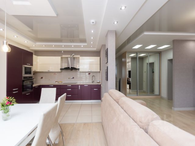 Высокие потолки 2,8 м, установлен теневой потолок, световые лини, смонтированы скрытые гардины и скрытые вытяжки.