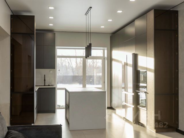 Мечта любой хозяйки- большая кухня с окном перед разделочным столом.