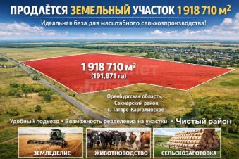 Арт. 134798532 Продаётся земельный участок 1 918 710 м² (191,871 га) в Оренбургской области, Сакмарском районе, Татаро-Каргалинском сельсовете — идеальная база для масштабного сельхозпроизводства!