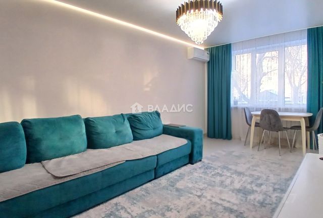 В марте 2025 года закончен капитальный ремонт: заменена проводка, поменяны двери, окна, сантехника, водопроводные и канализационная трубы, водосчетчики, выровнены стены и потолки, частично поменяны радиаторы отопления, лоджия застекленная (без внутренней отделки). Полы залиты, в комнатах положен качественный ламинат, в коридоре, кухне, санузле кафельная плитка. На кухне тёплый пол.