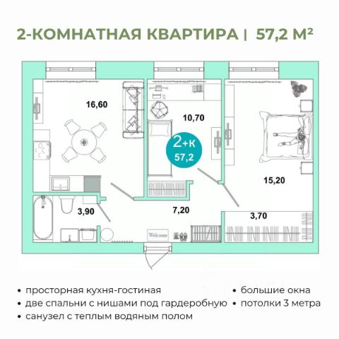 Продаётся 2-комнатная квартира в строящемся доме (Дом 4Б), срок сдачи: II-кв. 2027, общей площадью 58.32 кв.м., на 14 этаже. Новый жилой комплекс "Фамильные кварталы" от застройщика "СЗ СВ ДЕВЕЛОПМЕНТ" расположен по адресу Россия, Оренбург, Просторная улица.