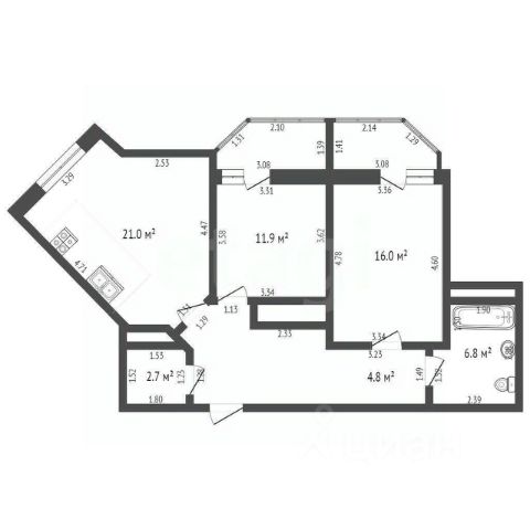 Общая площадь: 79,5 кв. м.