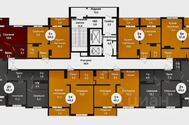Дом расположен по адресу город Оренбург, проспект Братьев Коростелевых, 2. Квартира находится на 7 этаже, девятиэтажного кирпичного дома, 1985 года постройки.