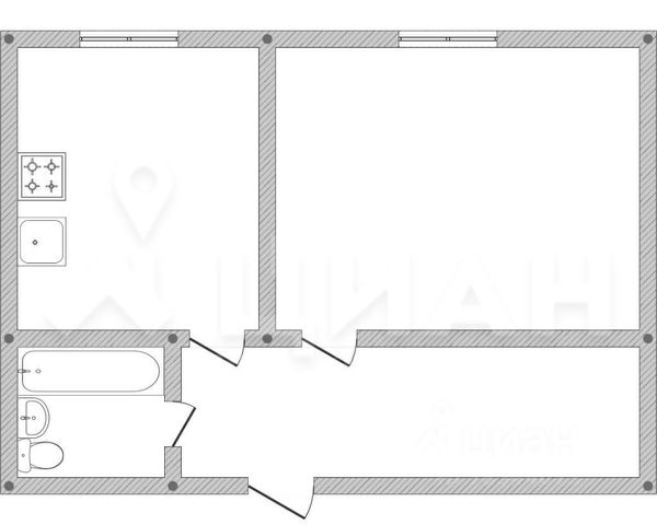 Ванная и сан.узел выполнены в серых тонах.
