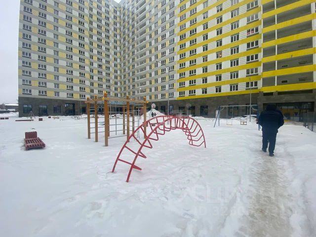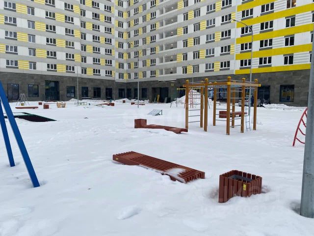 Детская площадка окружена деревьями. Идеальный вариант для проживания семьи, молодых людей, студентов и для сдачи в аренду.