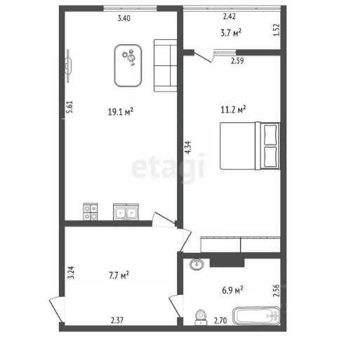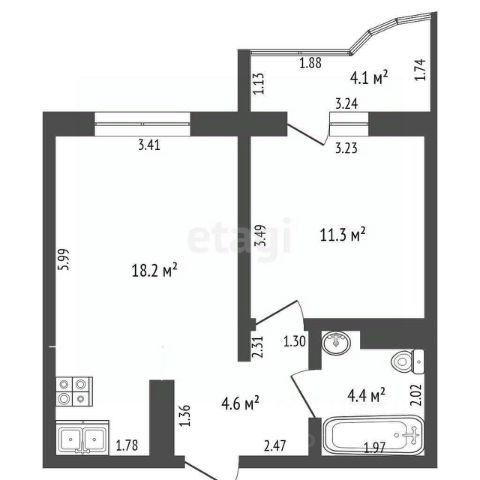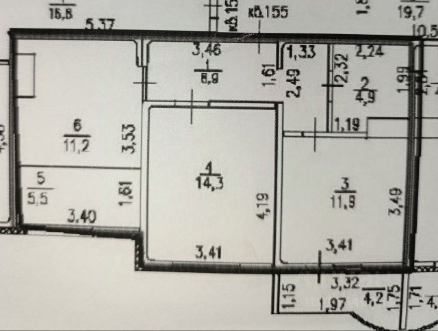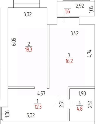> Общая площадь: 56,2 м2. Кухня 16,6 м2, Зал - 14,4 м2, Спальня - 12,0 м2, С/У - 5,0 м2, Прихожая 8,2 м2, + Лоджия - 4,22 м2 (не входит в общую площадь).