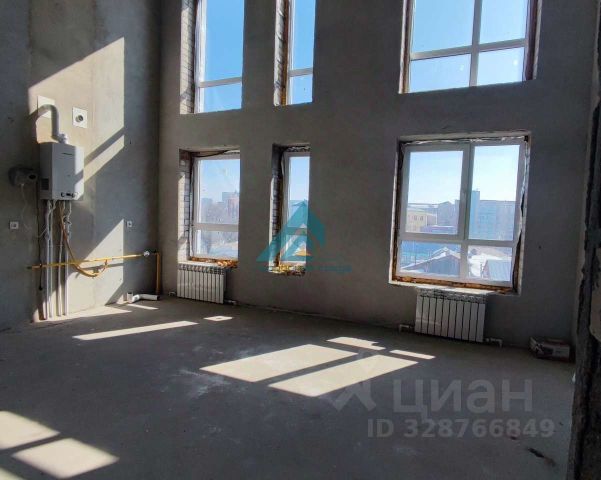 Кирпичные стены, потолки 3,2 метра, что визуально увеличивает пространство,