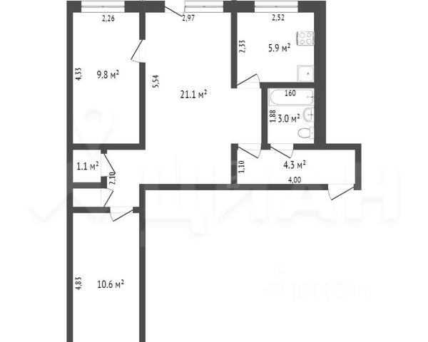 Общая площадь- 32,6 кв.м., просторная комната- 18,6 кв.м, кухня- 5,7 кв.м, вместительная гардеробная система в квартире.