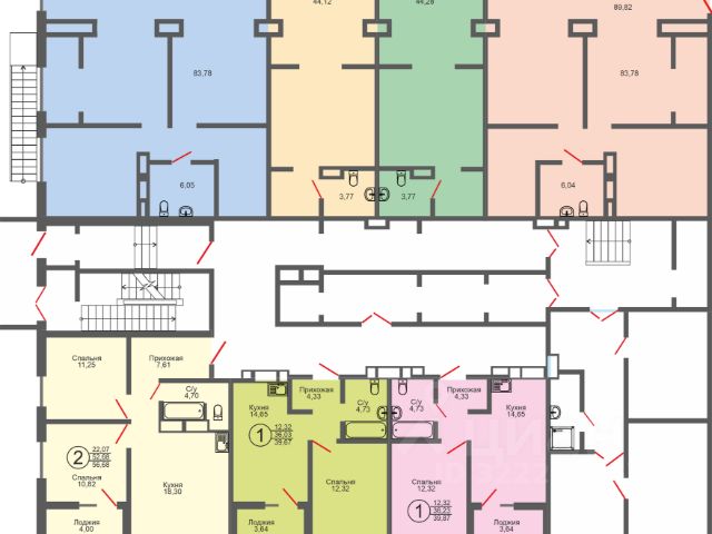 Площадь - 89,82 кв.м. - офис 4 - торцевое помещение в этом доме.