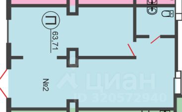 Площадь - 63,71 кв.м.