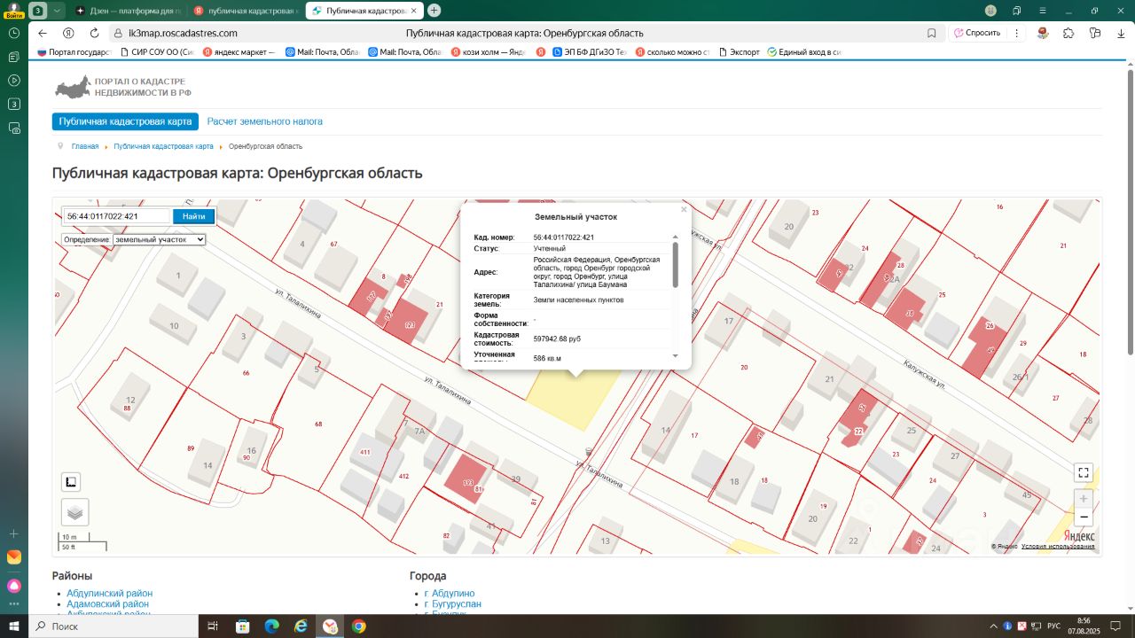 Земельный участок государственная собственность, на который не разграничена с кадастровым номером 56:44:0117022:421, площадью 586 кв.м., расположенного в территориальной зоне застройки индивидуальными жилыми домами (1-3 этажа) "Ж.1". Местоположение: Российская Федерация, Оренбургская область, город Оренбург городской округ, город Оренбург, улица Талалихина/ улица Баумана. Разрешенное использование: для индивидуального жилищного строительства (код 2.1 приложения к приказу Федеральной службы государственной регистрации, кадастра и картографии от 10.11.2020 П/0412 "Об утверждении классификатора видов разрешенного использования земельных участков", группа 2 приложения 9 к постановлению администрации города Оренбурга от 29.11.2016 3698-п "Об утверждении результатов государственной кадастровой оценки земель, входящих в состав территории муниципального образования "город Оренбург").