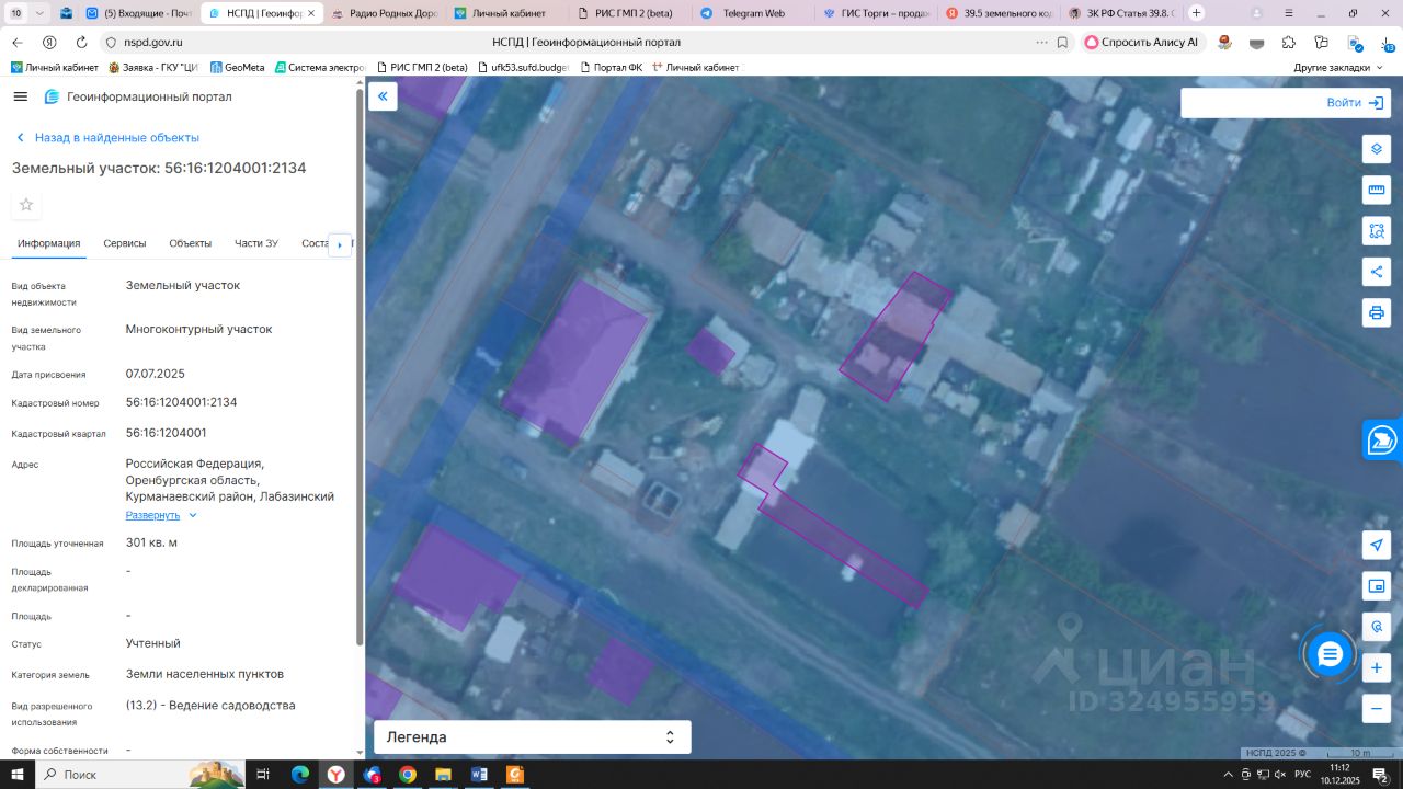 Земельный участок с кадастровым номером 56:16:1204001:2134 площадь 301 по адресу Российская Федерация, Оренбургская область, Курманаевский район, Лабазинский сельсовет, село Лабазы, улица Ленина, земельный участок расположен в центральной части кадастрового квартала 56:16:1204001