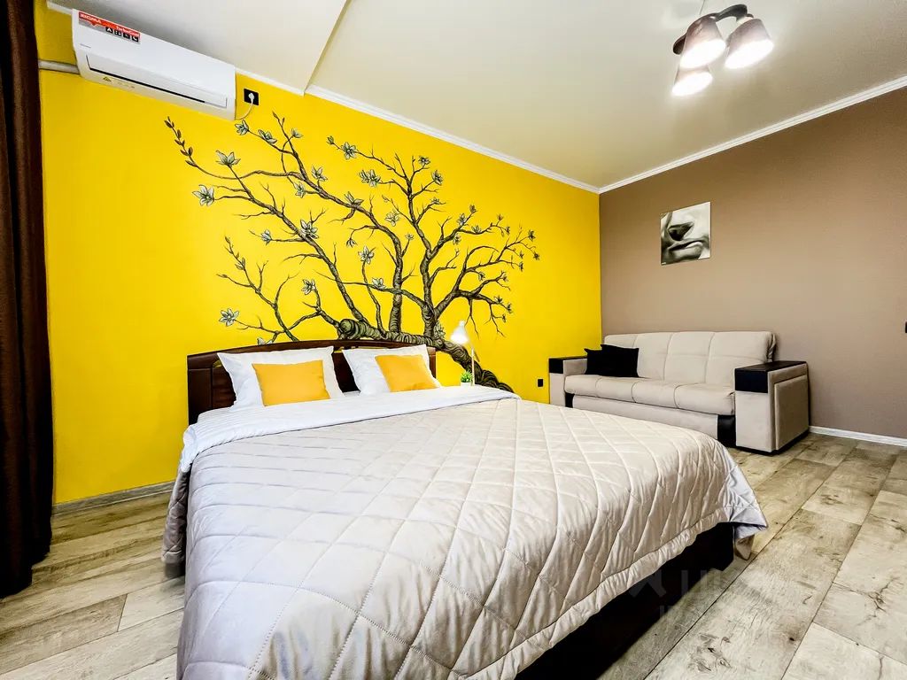 - Двуспальная кровать + 2 двуспальных дивана - размещение до 4 гостей.