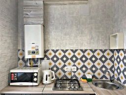 Апартаменты двухкомнатные, рассчитаны на проживание 13 человек. Имеется два основных спальных места и одно дополнительное. В наличии бытовая техника, мебель, посуда, постельные принадлежности, средства личной гигиены, кабельное TV, Wi-Fi.