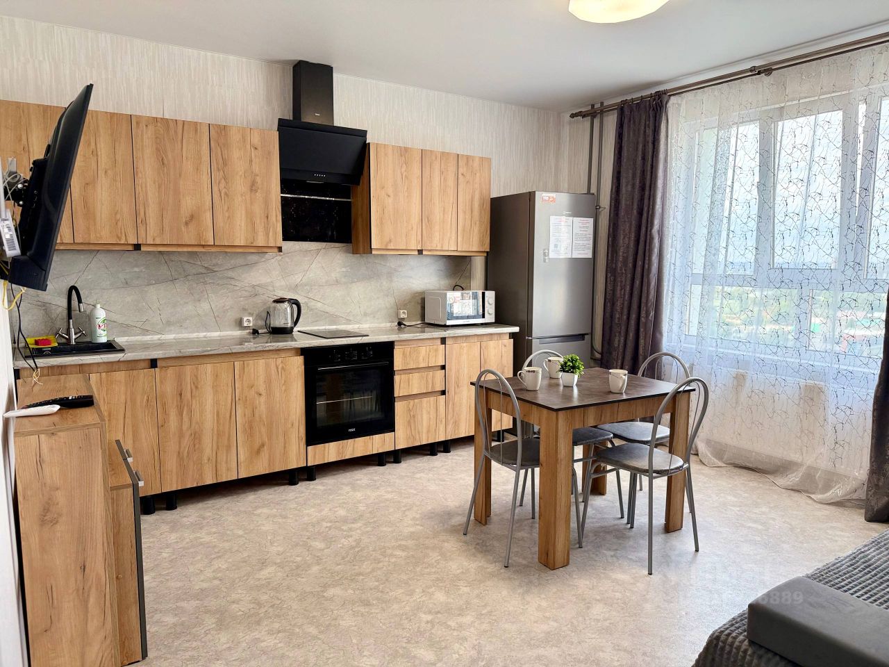 В квартире имеется все необходимое для проживания (вся кухонная утварь,постельное белье, полотенца, фен, утюг, гладилка, смарт ТВ, Wi-Fi )