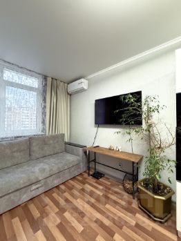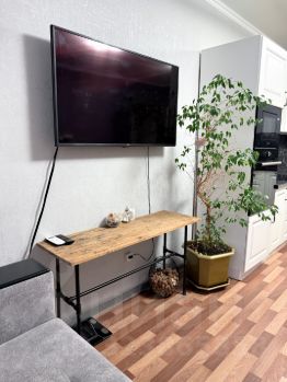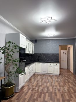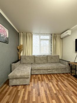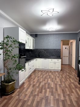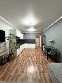 просторная кухня-гостиная , удобный раскладывающийся диван, подойдет в качестве дополнительного места