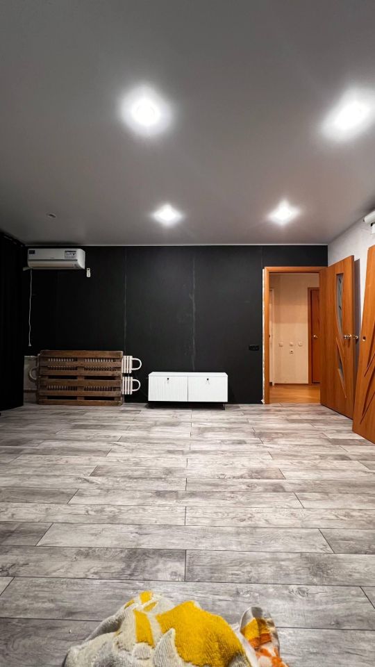 Кухня просторная — 10 квадратных метров. Большая комната 25 квадратных метров с большим диваном. Санузел раздельный, что удобно для большой семьи. Два балкона на разные стороны длиной 3 и 6 метров.