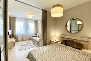 ФОТОГРАФИИ КВАРТИРЫ НА 100% СООТВЕТСТВУЮТ ДЕЙСТВИТЕЛЬНОСТИ. НАШИ ПРЕИМУЩЕСТВА: Полный пакет отчетных документов с подтверждением для бухгалтерии. Бесплатный WiFi в квартире. Наличный и безналичный расчет. В квартире не курят. В КВАРТИРЕ ИМЕЮТСЯ: Кондиционер; ЖК-телевизор с подключенным кабельным ТВ; Комплект хлопкового постельного белья и полотенца. Базовый комплект постельных принадлежностей предоставляется бесплатно (в 1-комнатной квартире — на одну двуспальную кровать). Если вам понадобятся дополнительные комплекты, сообщите заранее, пожалуйста (1 комплект — 300 ₽).; Бытовая техника (стиральная машинка, СВЧ-печь, холодильник, плита, чайник, утюг, фен); Средства для личной гигиены (шампунь, гель для душа, мыло); Посуда для приготовления пищи; Гладильная доска и сушилка.