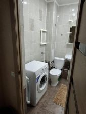 В квартире имеется все необходимое для проживания: кухонный гарнитур, духовой шкаф с варочной панелью, кондиционер, диван, шкаф, совмещённый санузел, холодильник, стиральная машина, Wi-Fi.