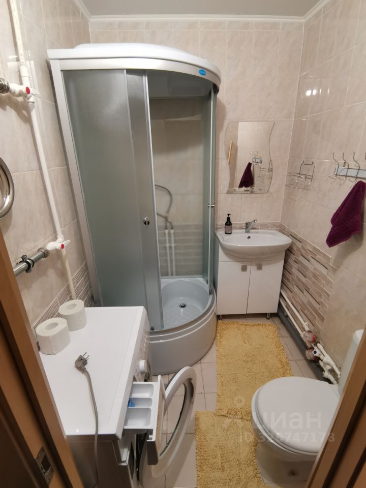 Ванная комната с душевой кабиной и стиральной машиной (сан.узел совмещённый).