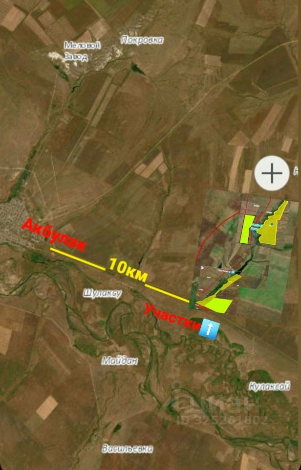 - Участок находится в районе мокрого оврага-10км от Акбулака. Участок примыкает к платине. Возможно создание водоема для себя и для полива ( по соседству все занимаются выращиванием бахчевых) и для выращивания рыбы ( у нас были такие планы).