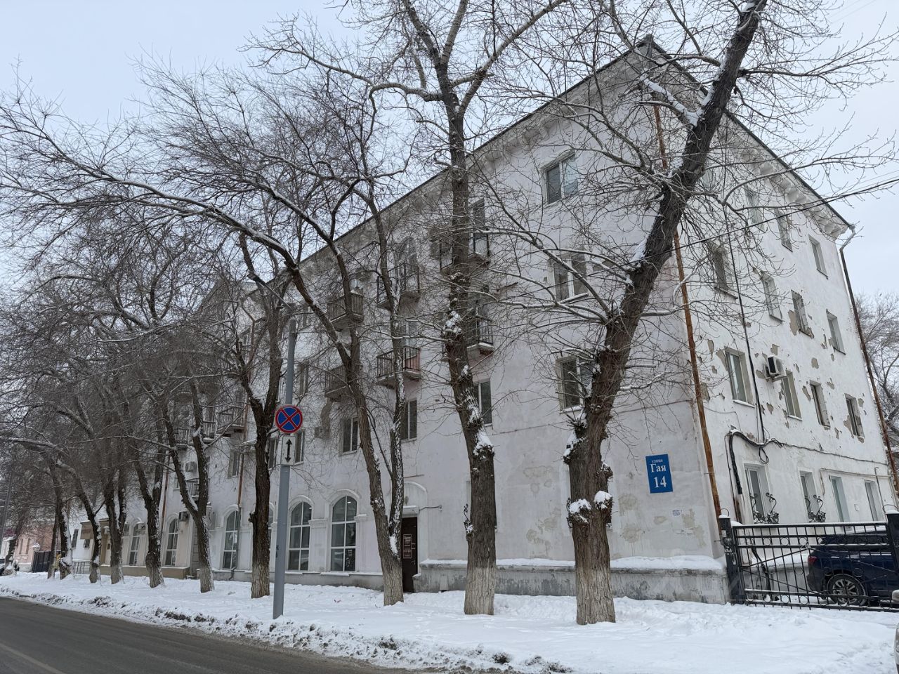 Здание находится на ул. Гая, рядом с ул. Постникова с высоким автомобильным трафиком.