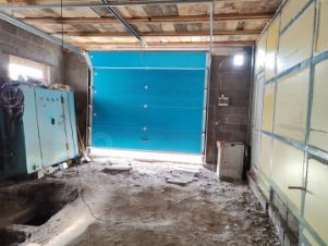 приготовлен отсек в гараже на месте старого погреба для компрессора, для уменьшения шума при его работе.