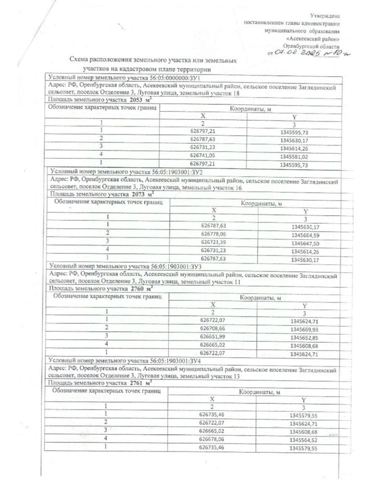Земельный участок с кадастровым номером 56:05:1903001:666, площадью 2761 кв.м. Местоположение земельного участка: Российская Федерация, Оренбургская область, Асекеевский муниципальный район, сельское поселение Заглядинский сельсовет, поселок Отделение 3, улица Луговая, земельный участок 13. Категория земель: земли населенных пунктов. Разрешенное использование: для индивидуального жилищного строительства (код 2.1). Земельный участок находится в государственной или муниципальной собственности. Земельный участок никому не продан, не заложен, в споре и под запрещением не состоит, не обременен правами и претензиями третьих лиц. Территориальная зона - Ж-1. Жилая зона. В отношении земельного участка ограничения не установлены.