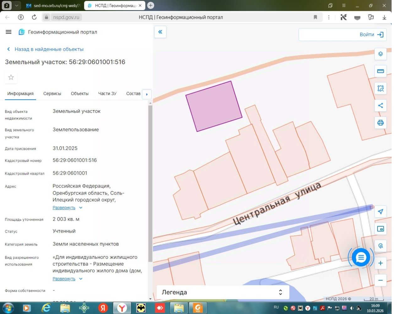 Земельный участок с кадастровым номером 56:29:0601001:516, площадь 2003 кв.м., по адресу Российская Федерация, Оренбургская область, Соль-Илецкий городской округ, земельный участок расположен в кадастровом квартале 56:29:0601001