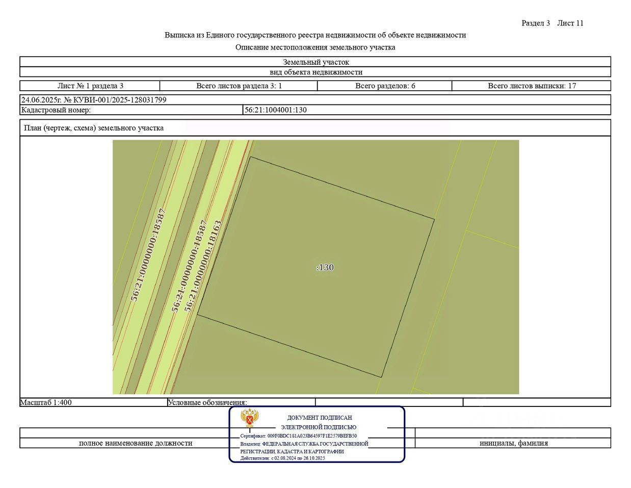 Земельный участка с кадастровым номером 56:21:1004001:130, адрес Оренбургская обл., р-н Оренбургский, с/с Каменноозерный, с. Каменноозерное, ул. Садовая, уч. 268