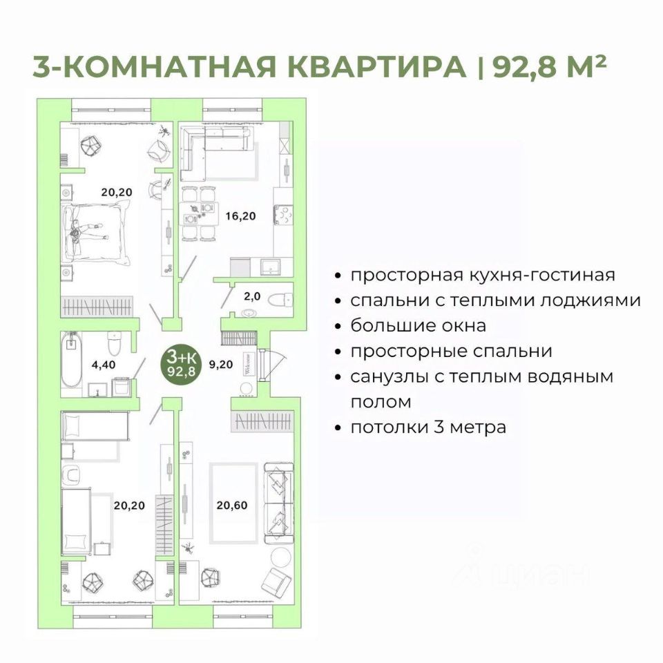 Общая площадь92,8 м²