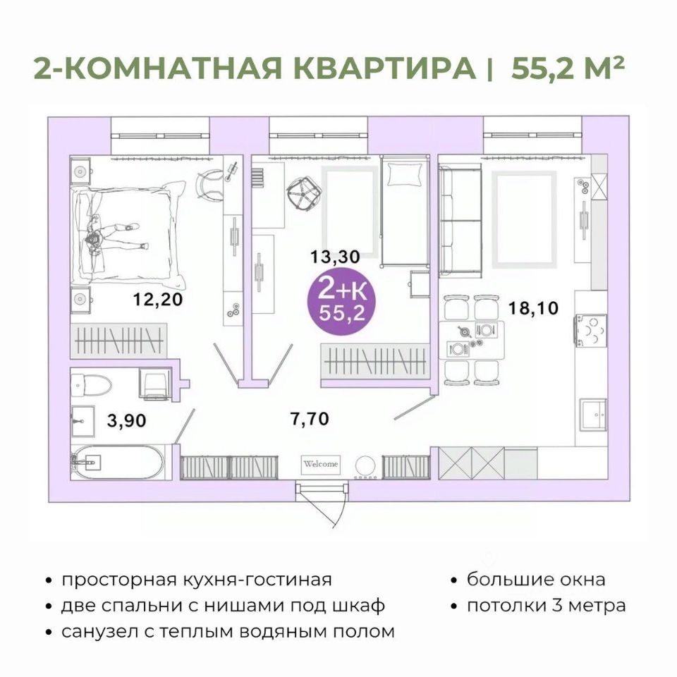 Общая площадь55,2 м²