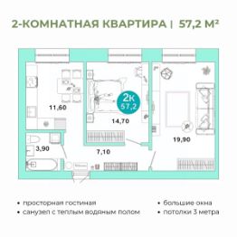 Общая площадь57,2 м²