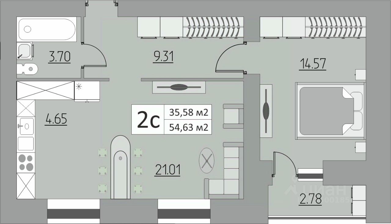 2-комн. квартира, 54,63 м²