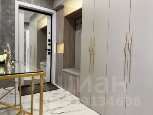 В прихожей большой гардероб с подсветкой , встроенная вешалка для верхней одежды, ниша для обуви и консоль с большим светящимся зеркалом .