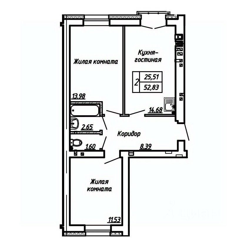 Продаётся 2-комнатная квартира в строящемся доме (Дом 11), срок сдачи: IV-кв. 2026, общей площадью 52.83 кв.м., на 2 этаже. Расположение, транспортная доступность