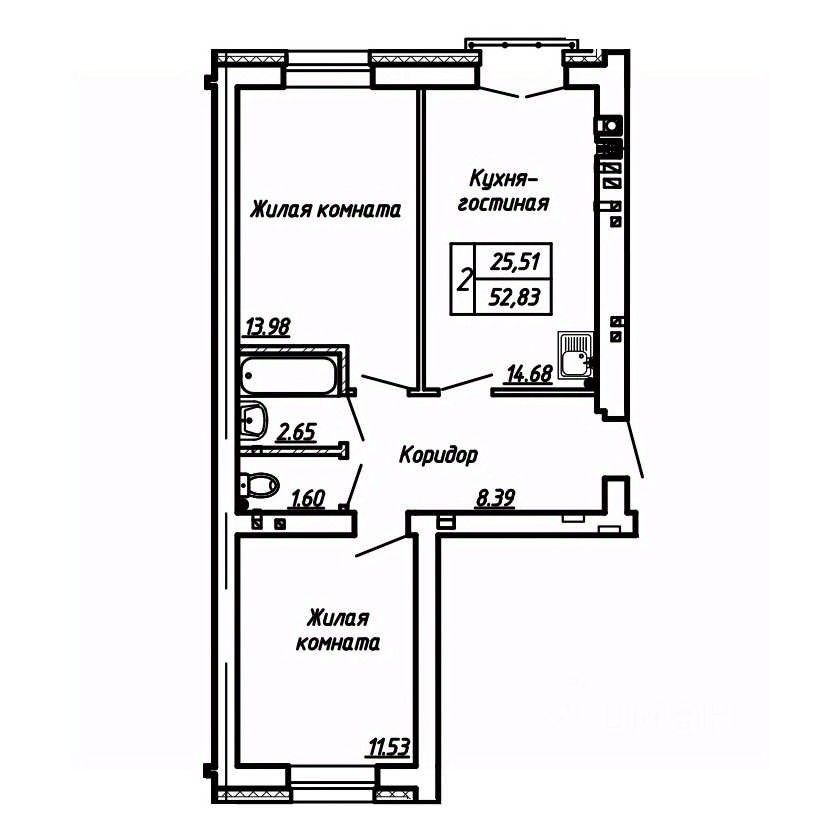Продаётся 2-комнатная квартира в строящемся доме (Дом 10 Корпус 1), срок сдачи: IV-кв. 2026, общей площадью 52.83 кв.м., на 4 этаже. Расположение, транспортная доступность