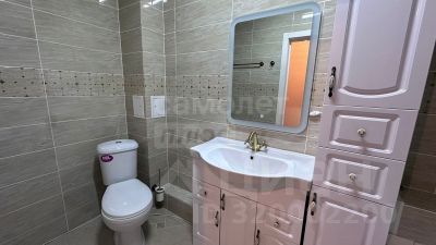 Квартира оформлена натяжными потолками, на полу в комнатах уложен ламинат, а на кухне ,санузлах и коридоре плитка, пластиковые окна обеспечивают хорошую тепло- и звукоизоляцию. Стены оклеены обоями, создавая уютную атмосферу. Санузел отделан кафелем, что гарантирует его долговечность и лёгкость в уходе.