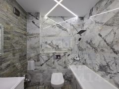 Во всей квартире натяжные потолки, которые придают пространству современный и элегантный вид.