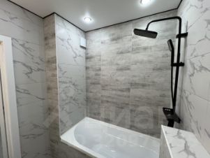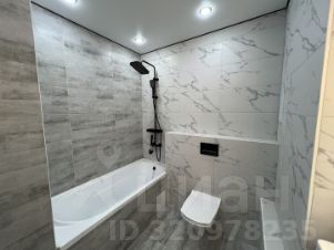 Санузел совмещенный, но очень просторный. Полноценная ванна, инсталляция, раковина - все на своих местах и совсем не тесно, как во многих планировках в студиях и 1-к квартирах.