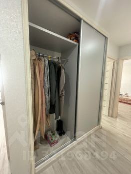 В прихожей установлен Огромный и вместительный встроенный шкаф-купе.