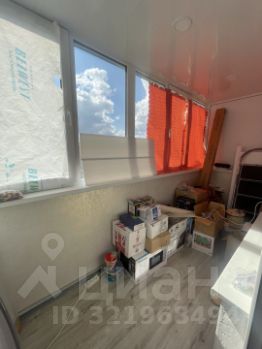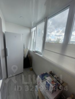 Большая застекленная, утопленная лоджия, так-же с натяжным потолком и напольным покрытием .