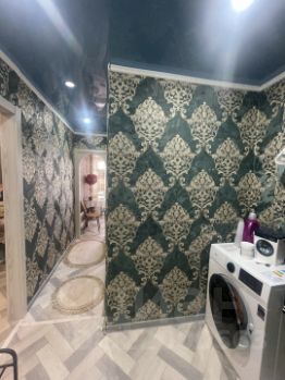 По всей квартире натяжные потолки с точечным освещение.